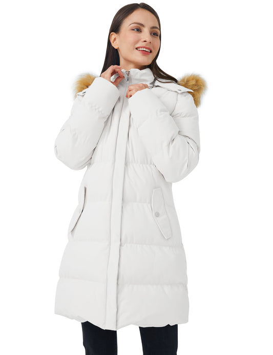 Women'S Puffer Jacket Warm Winter Coat Hooded Waterproof Puffer Jacket White M